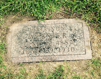 Harrison Webster passed away June 29th, 1930, and is buried in the Oak Grove Cemetery.